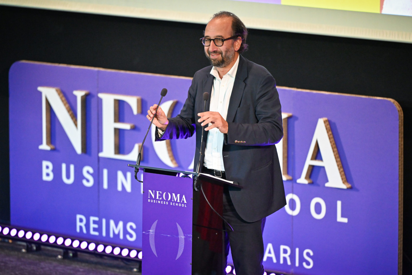 11:30 a.m. Michel-Edouard Leclerc, president of NEOMA and president of the E. Leclerc strategic committee took the stage.