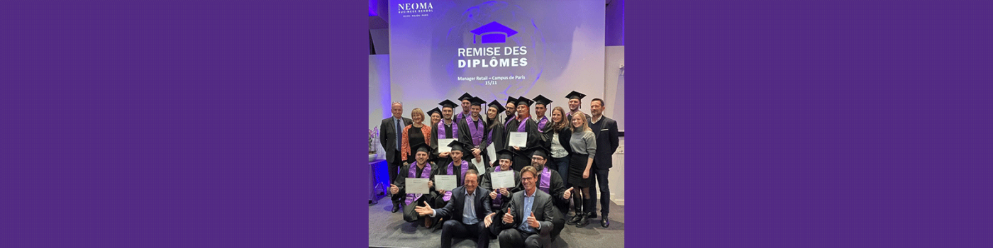On Wednesday 15 November, NEOMA Paris Campus hosted the graduation ceremony for the 14 E. Leclerc Centre employees who successfully completed the Retail Manager programme, a tailor-made course developed by Executive Education in partnership with the E.Leclerc Centres.